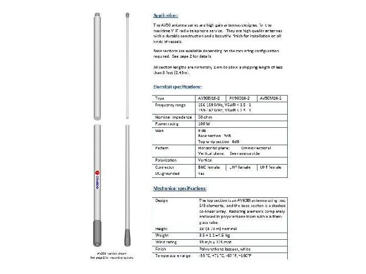 COMROD AV90/2BI – 16′ Marine VHF Antenna, 2-Piece | 21090 SHIPPING CHARGES APPLY